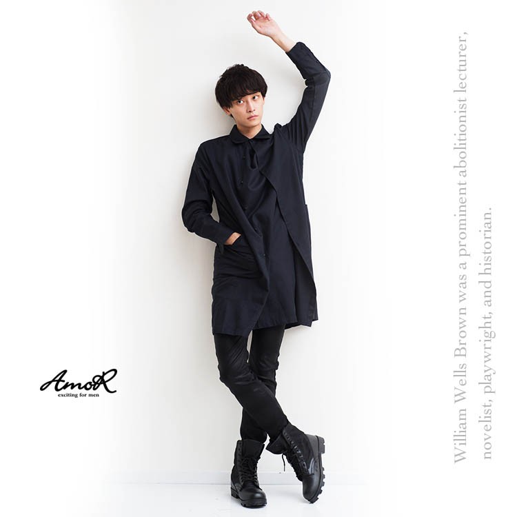 ロングシャツ メンズ シャツコート インポート ロング丈 シャツ コート ロングコート 送料無料 秋 冬 新作 トップス 個性的 キレイ目 ホスト V系 ビジュアル系 ストリート系ファッション モード系ファッション 衣装 ブラック 黒 ホワイト 白のおすすめ キテミヨ Kitemiyo